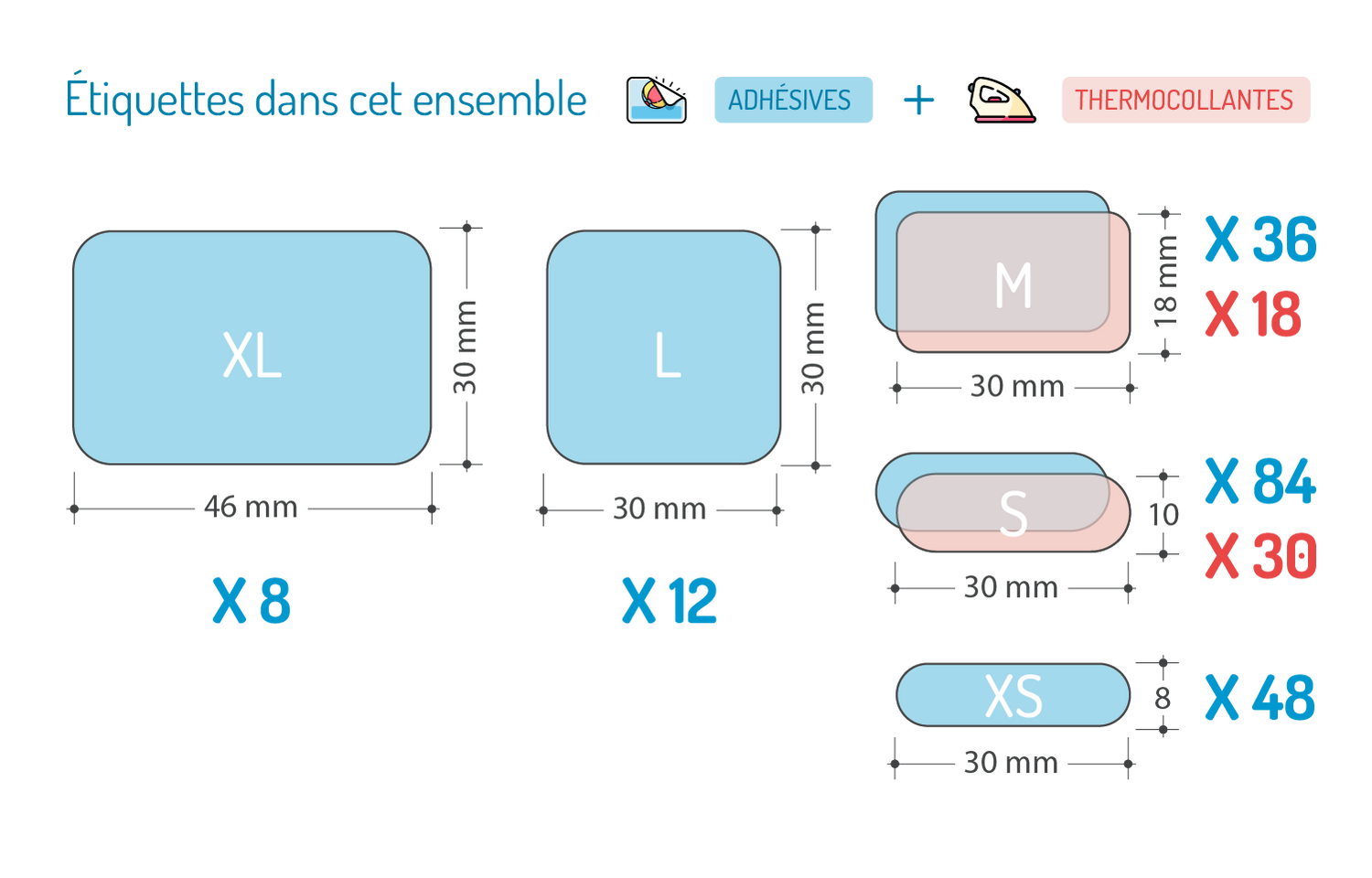 Oui, tout à fait ! Si vous ne souhaitez pas vous servir de nos étiquettes thermocollantes, vous pouvez marquer les vêtements avec nos étiquettes autocollantes, à condition de les coller sur l’étiquette d’entretien du vêtement. C'est l'étiquette souvent blanche, satinée, avec les pictogrammes de lavage et de repassage ou tout est écrit en tout petit.