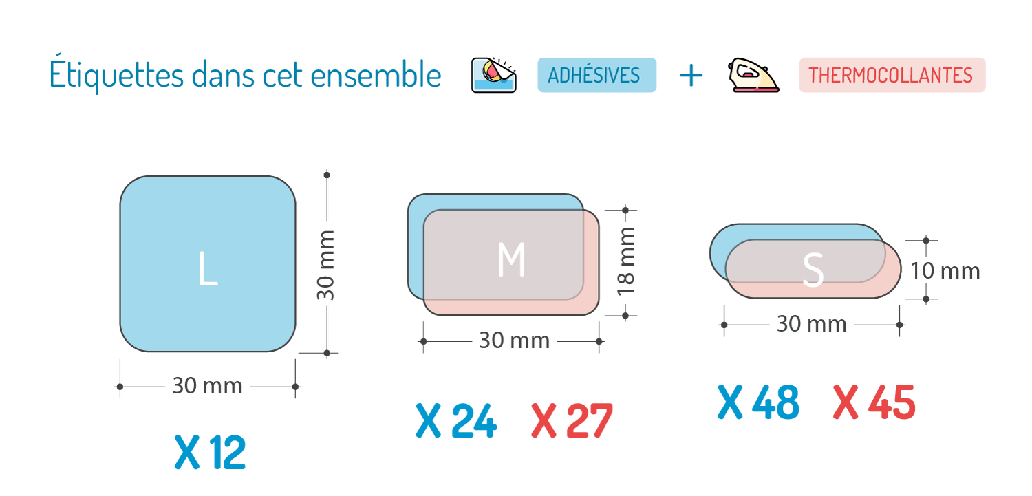 Vous l'avez compris, ce pack contient des étiquettes autocollantes et des étiquettes thermocollantes qui permettent de marquer des produits très différents. Alors, pour les vêtements, on vous explique.